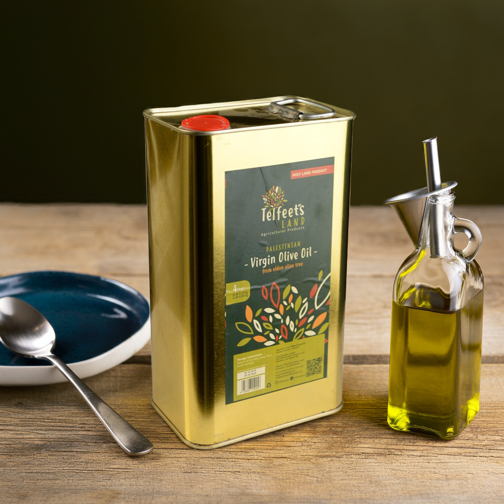 Harvested from ancient golden olive trees in Palestinian groves, this premium 4L virgin olive oil delivers exceptional purity and flavor. Cold-pressed using traditional methods to preserve its rich nutritional profile, it offers a robust, fruity taste with peppery undertones. Perfect for culinary enthusiasts seeking authentic Mediterranean flavor in cooking, finishing dishes, or as a healthy daily staple.